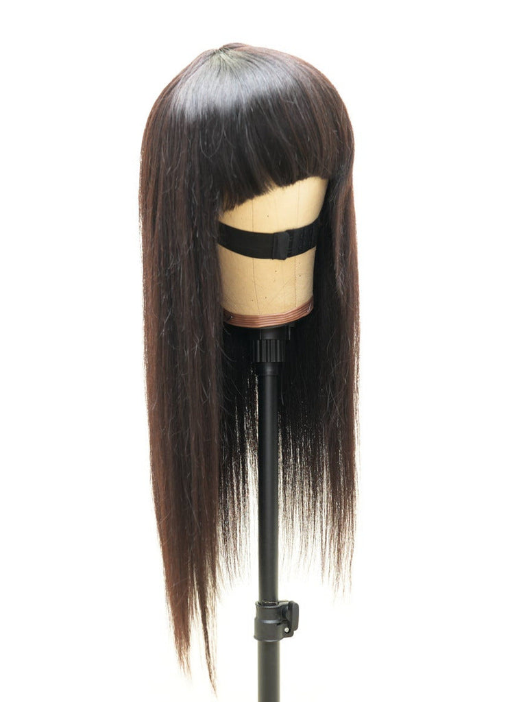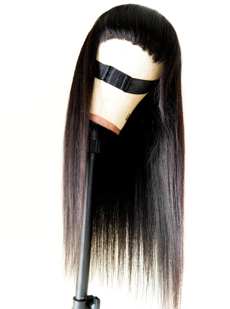 Onyx Wig- Throw and Go - Straight hair - Beginner Friendly- No Glue No Lace- Natural Black - 180% Density - Bangs for easy install